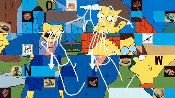 Oil, tar, plaster, ink, on plywood. 41x72 2008