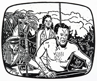 Creature From the Black Lagoon (1954) with Fishing Bobber and Hook Wood-cut Print AP